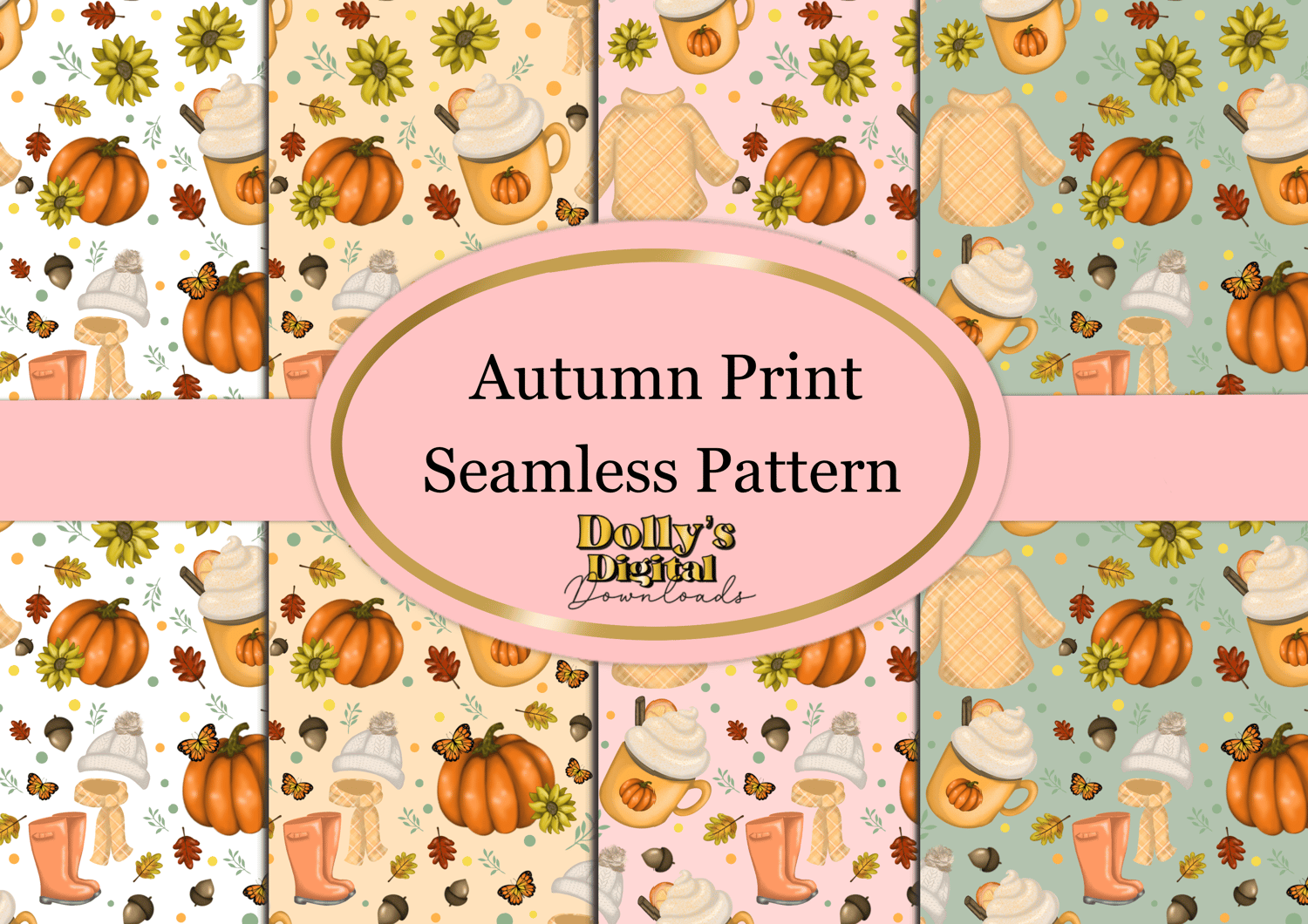 Includes Four Autumn Print Seamless Patterns Clipart PNG (4 PNG’s)