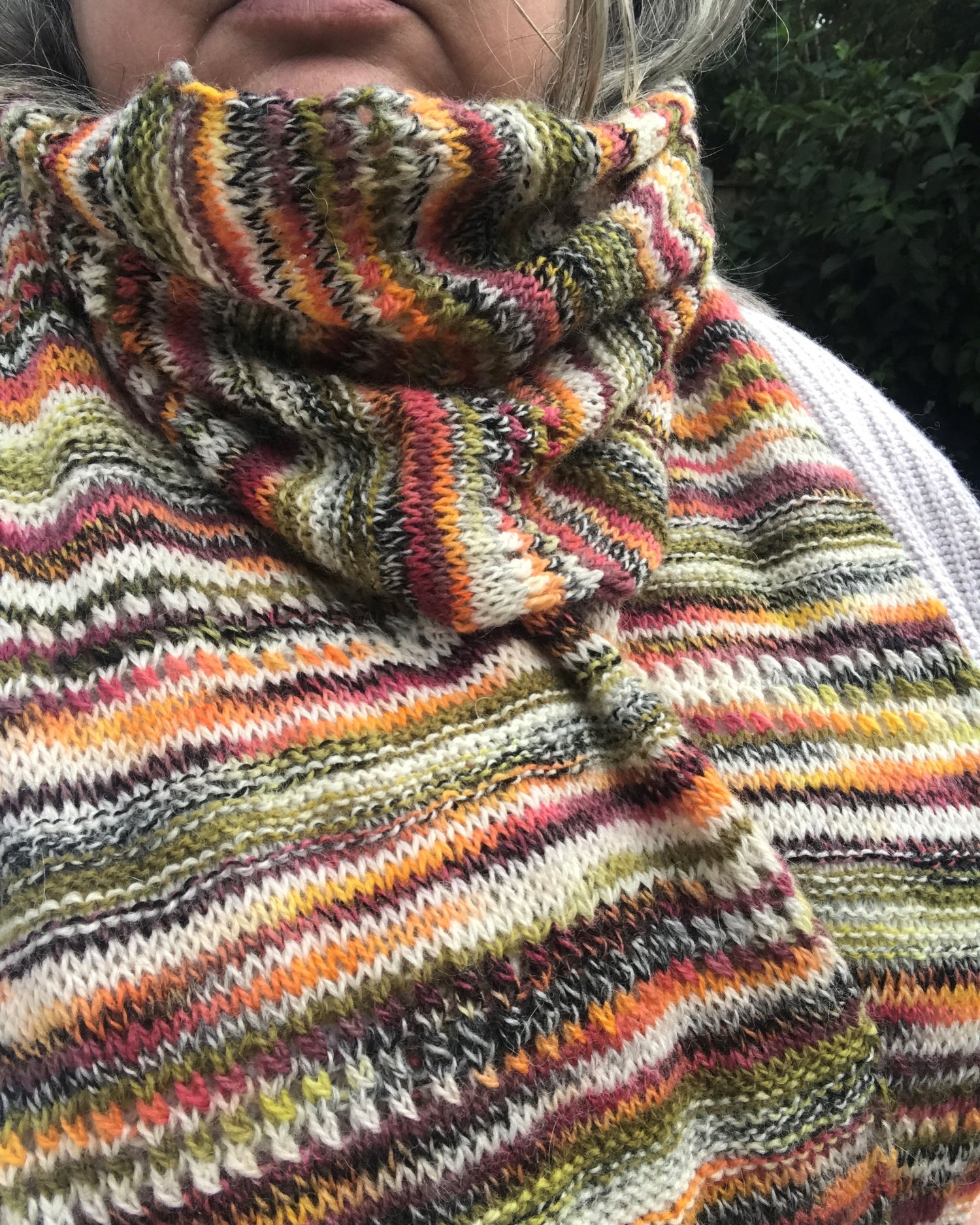The pattern offers instructions for two yarn weights. The 4ply (fingering weight) version is knitted on bigger needles for a more open, lightweight fabric that is fabulous for spring and summer wear. The DK version is knitted on smaller needles for a denser, cosier fabric that is perfect for autumn. Whilst the scarf can be knit in a single colour, the small segments of the pattern make it ideal for stash busting your odds and ends from previous projects.