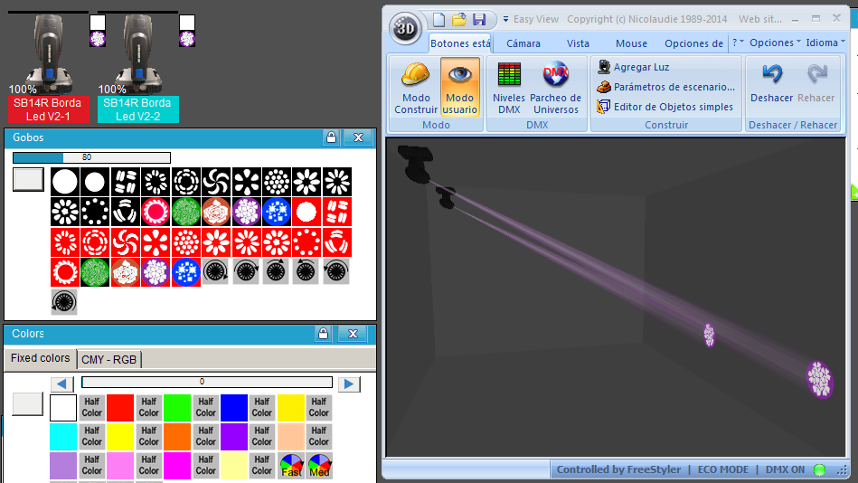 Esta Librería SSL2 está optimizada para trabajar con Magic 3d Easy View. Es decir para ver una representación 3D de las secuencias que estemos realizando con Freestyler, QLC+ o cualquier otro soft que se conecte con Magic 3d.