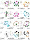 The designs in this pack come in a range of sizes, all of which are clearly indicated in the pictures in millimeters. This means that you can easily choose t Introducing our set of embroidery designs pack, perfect for use with embroidery machines!