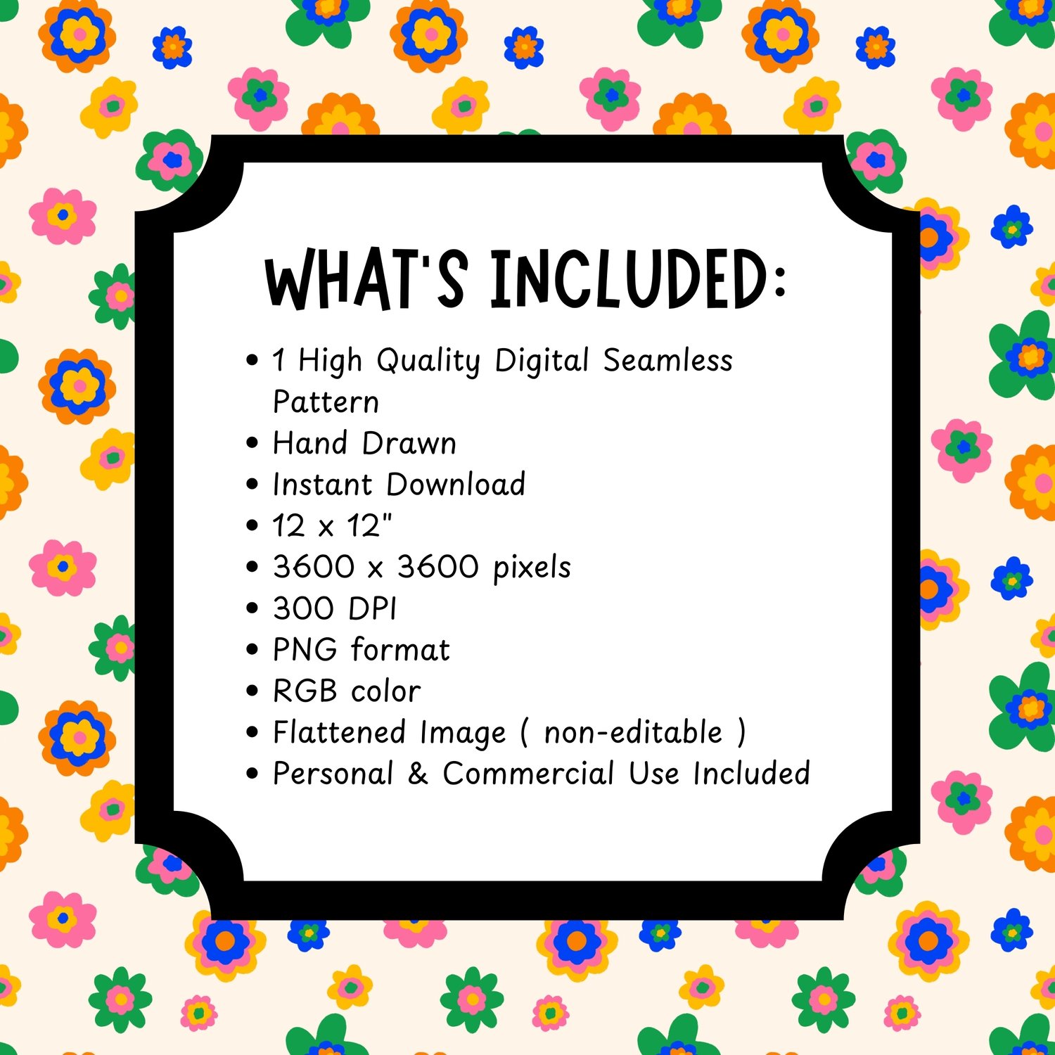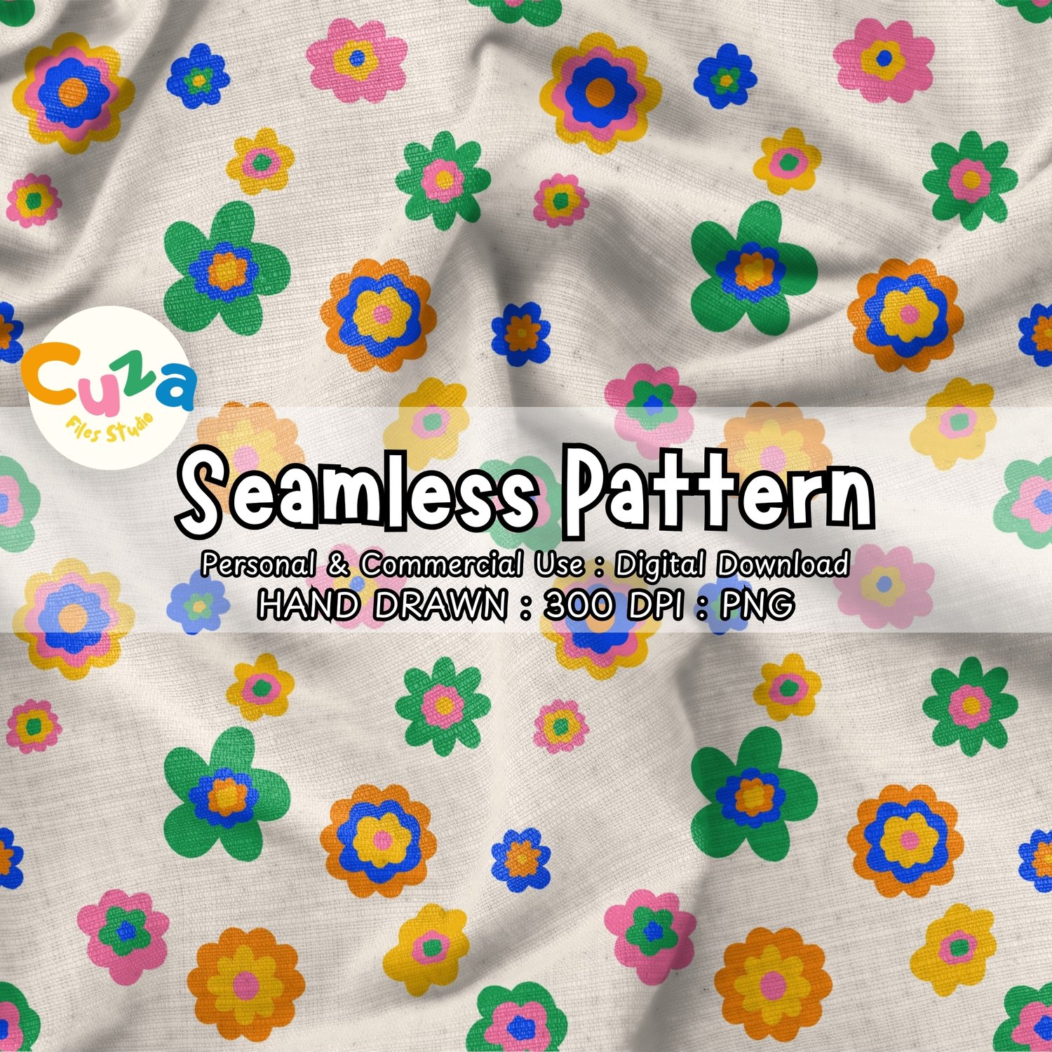 Every petal was meticulously hand illustrated by me, Cuza Files Studio to ensure an authentic, "imperfect" artisanal feel that perfectly captures the "Dopamine Decor" and "Craft Maximalism" movements. This pattern offers a breathable yet high energy alternative to the denser florals, making it an essential asset for boutique branding and DIY makers.