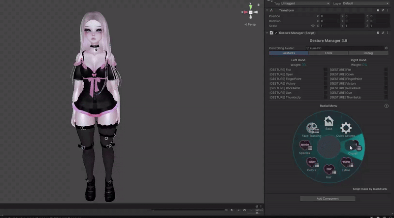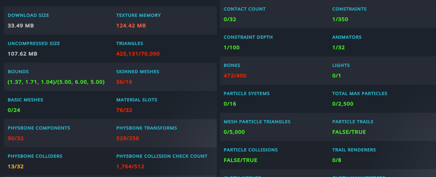 Hair, Boobs, Butt, Ears, Tail, Wings, Collars, Colliders on body.