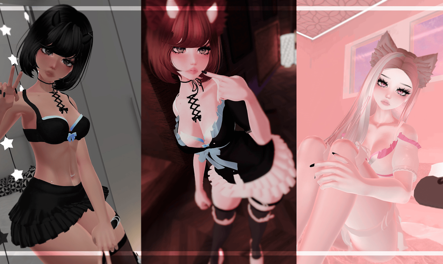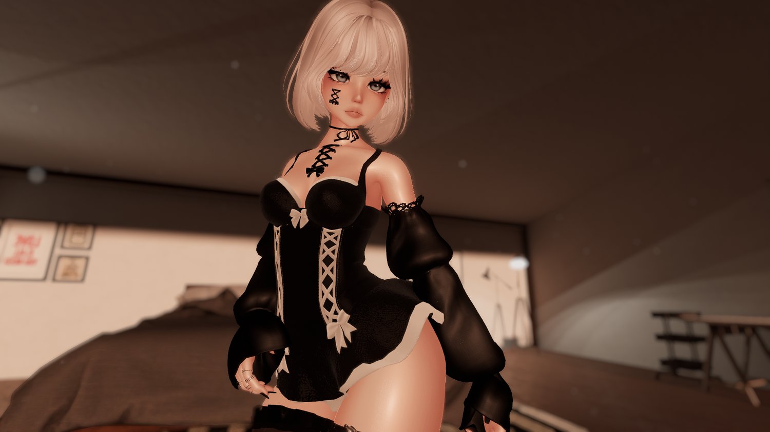 White colors swap, Lace shorts, Longer bangs, Saturation hair, Emission hair, Saturation clothes, Sheer Thigh Highs/Stockings, Fishnet Stockings, Eye Color Options, Nail Color, Bigger boobs option.