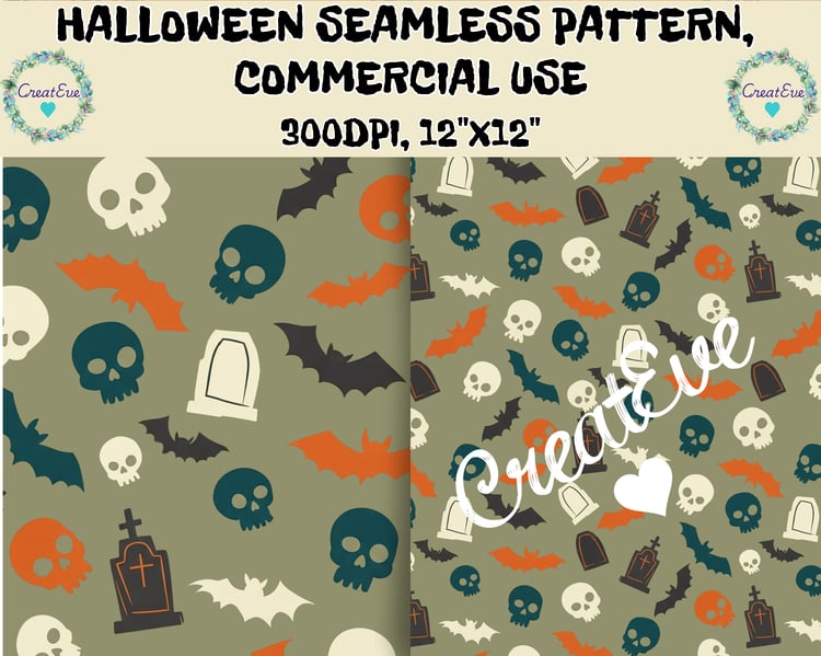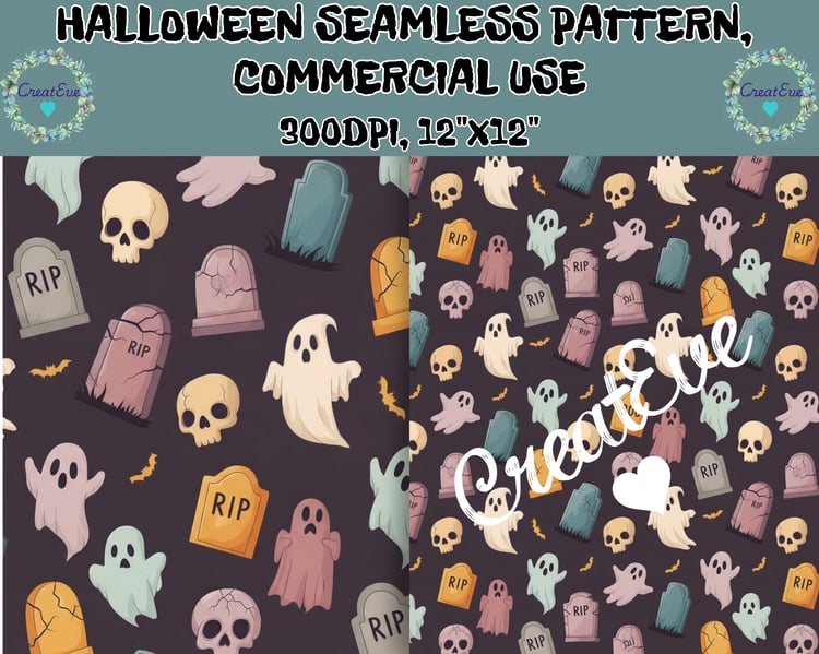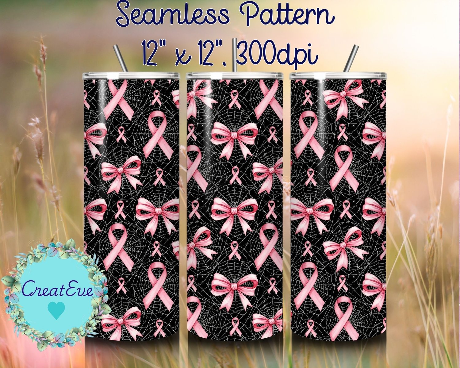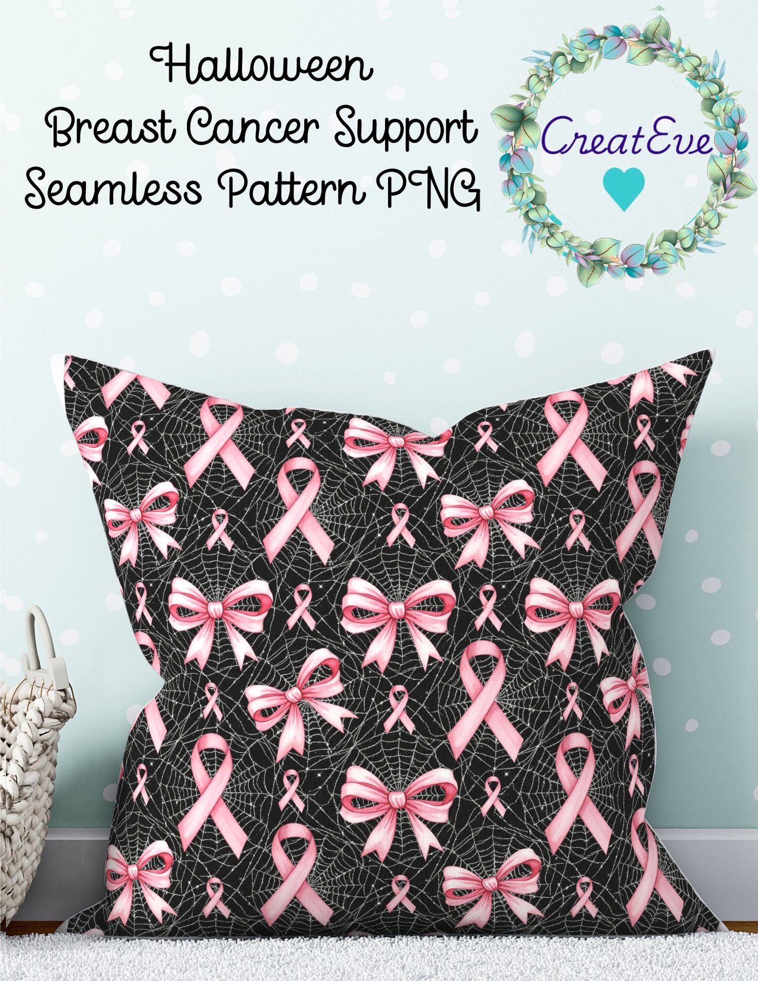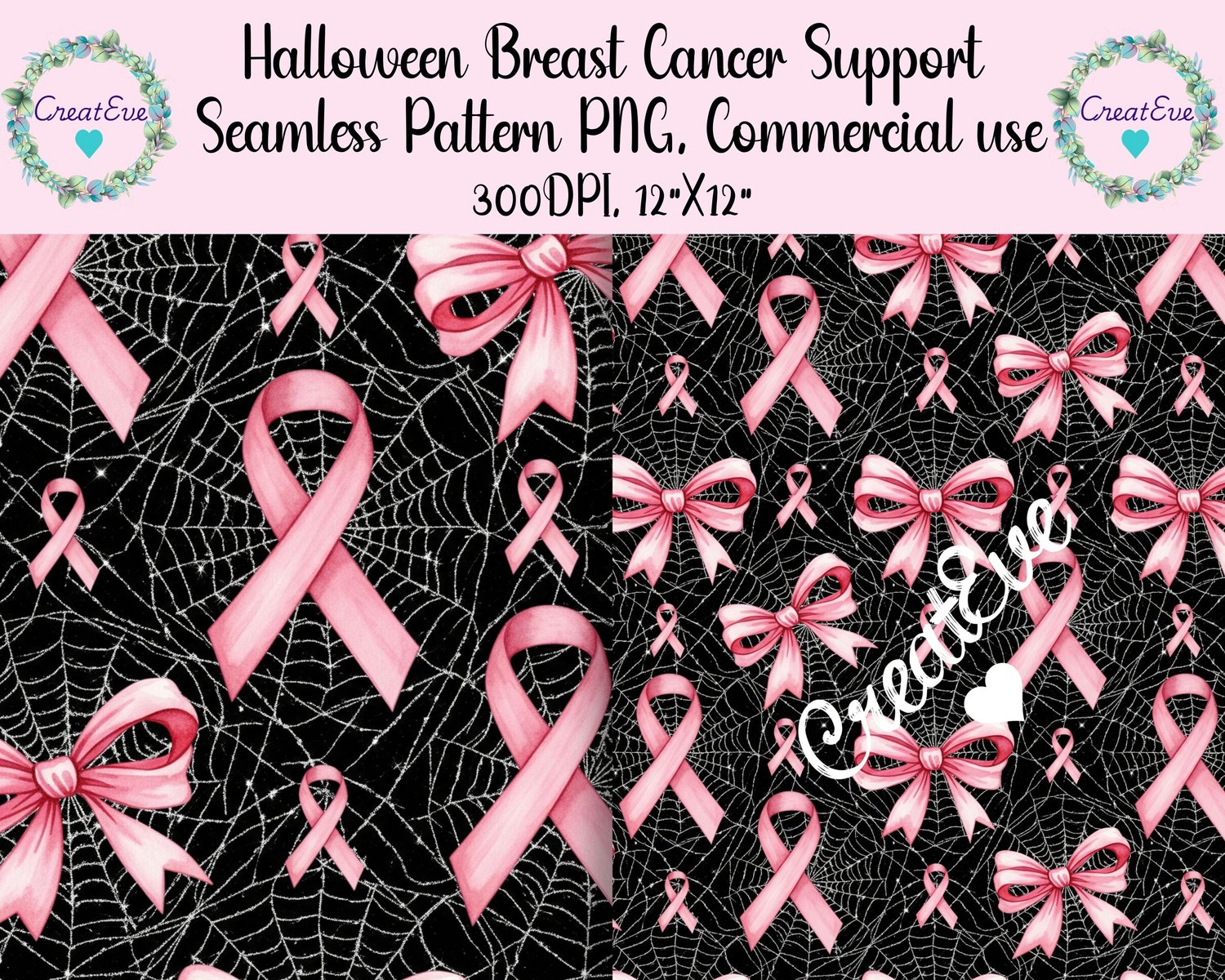 Spooky Pink Ribbon Cancer Support Seamless Pattern 12"x12", 300dpi, Commercial Use PNG