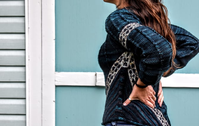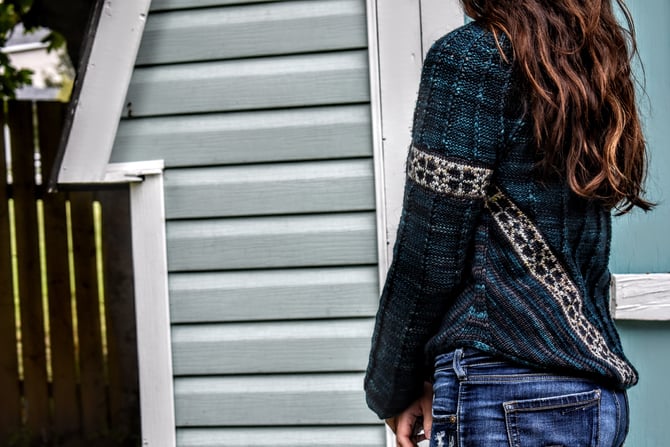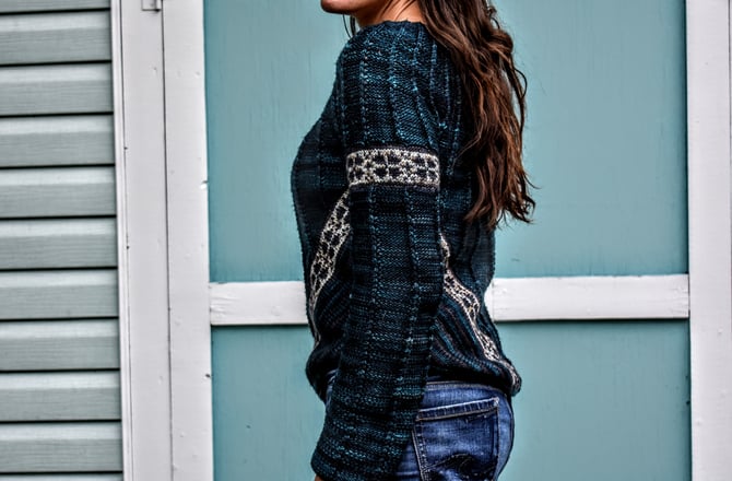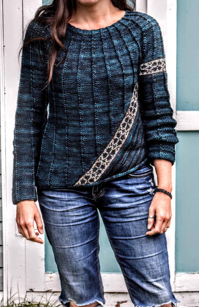 Codroy Valley is a top-down circular yoke with valleys of texture and stranded colourwork. The textured pattern is worked flat and the stranded colourwork is in the round, and on the bias, with a small steek at the hem. Another great steeking project for a first time steeker!