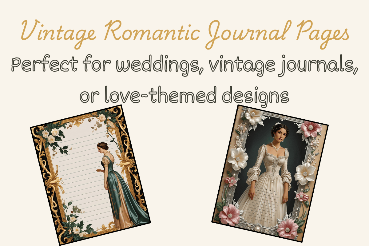 This 8.5x11 vintage wedding journal page features romantic Rococo-inspired florals, delicate pearlescent borders, and lined paper perfect for vows, guest books, or love letters. Instant high-resolution 300 DPI printable download for keepsake-quality prints.