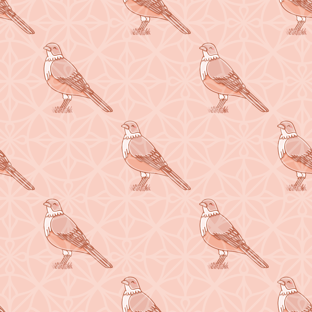Kawaii Rufous Bellied Thrush Vector Repeat Pattern