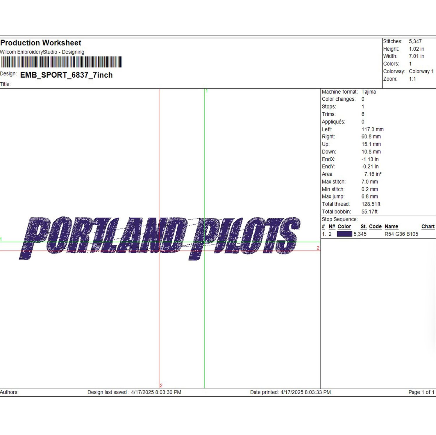 Portland Pilots Wordmark Embroidery Designs, NCAA Portland Pilots Machine Embroidery Designs, NCAA Logo embroidery designs, Ncaa Pilots Logo, Digital Download