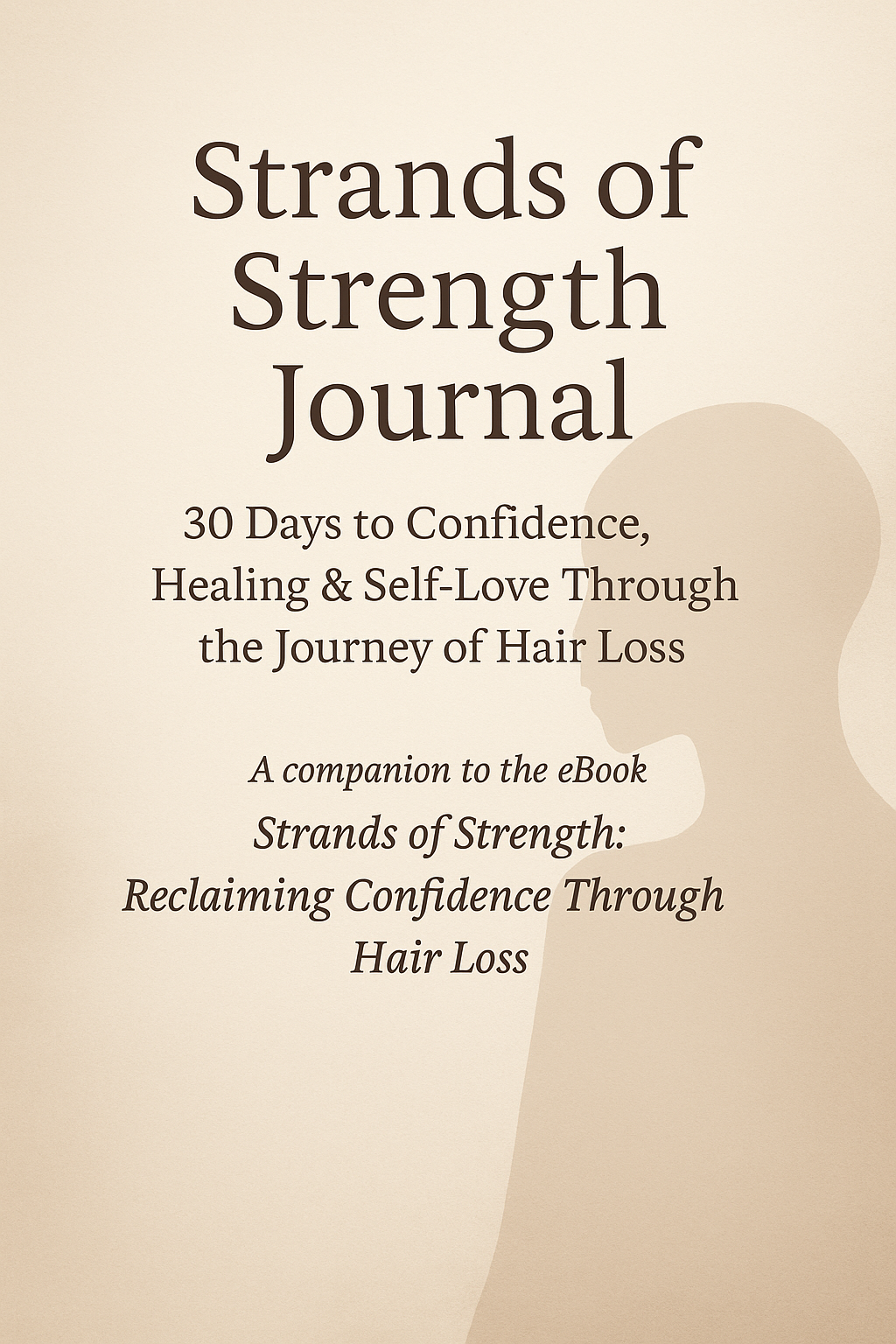 Strands of Strength is a 30-day guided journal created for anyone navigating the emotional and spiritual journey of hair loss, whether you are a woman or man. Whether it is because of alopecia, chemotherapy, autoimmune conditions, or lifestyle changes, this journal offers a safe and empowering space to reflect, release, and rebuild your confidence.