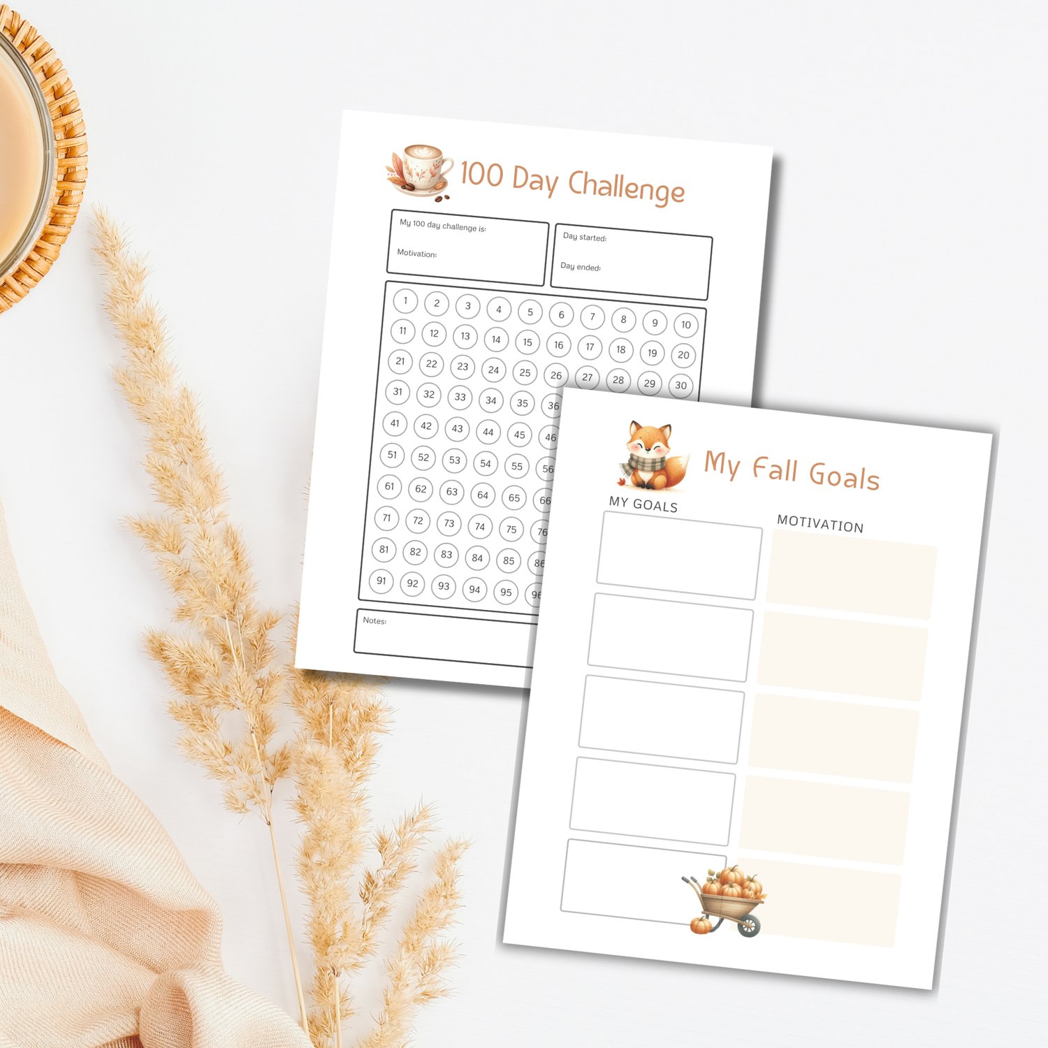From a 3-month fall tracker to a 100-day challenge, water tracker, fall goals, and new habits worksheet -- these pretty printables make reaching your goals feel like fall fun!