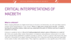 When studying Macbeth at a higher level (such as A Level or at University), you will most likely need to include critical interpretations in your essays. There’s a right and a wrong way to do this - so before learning the quotations below, make sure you understand the point of criticism and how to apply it properly in an essay.