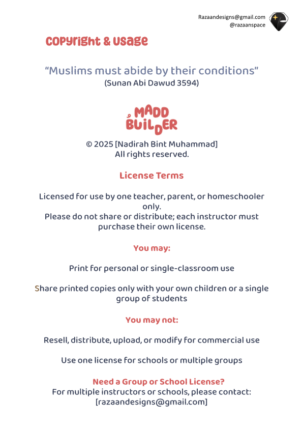 Bring joy and clarity into Arabic learning with The Madd Builder a beautifully designed, tactile activity that helps children see, hear, and build Arabic long vowels (madd) step by step.