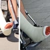 This man had surgery on his foot. His toes sticking out of his massive Fiber SLC are still swollen and coloured. He was brought to an Austrian hospital by car. We first meet him when the car parks in front of the building. He is then lifted out of the car into a wheelchair and pushed to the entrance. Waiting there for his companion we can take a detailled look at his casted foot from nearly all sides.