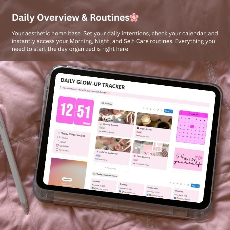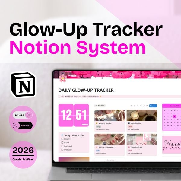 Daily Glow-Up Tracker || Aesthetic Notion System for Girls