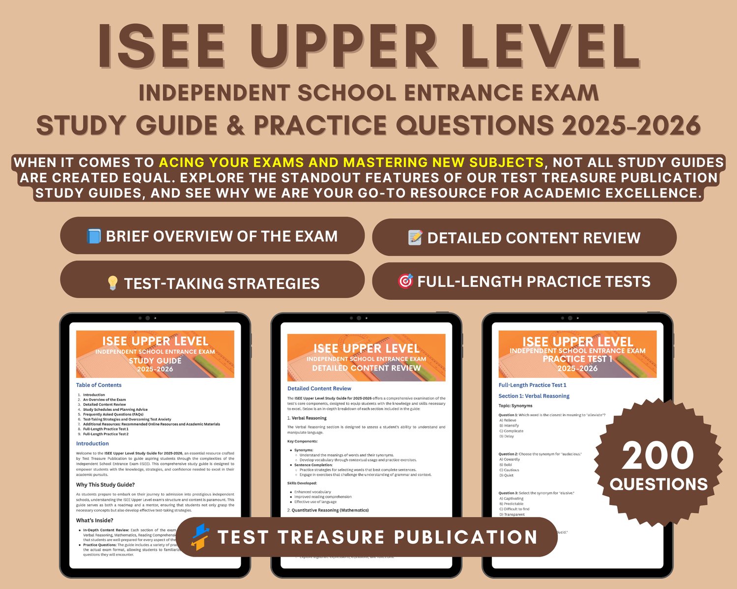 🎓 Elevate your exam preparation with our "ISEE Upper Level Prep Book 2025-2026" by Test Treasure Publication! This comprehensive study guide is your key to success in the upcoming ISEE Upper Level exam.