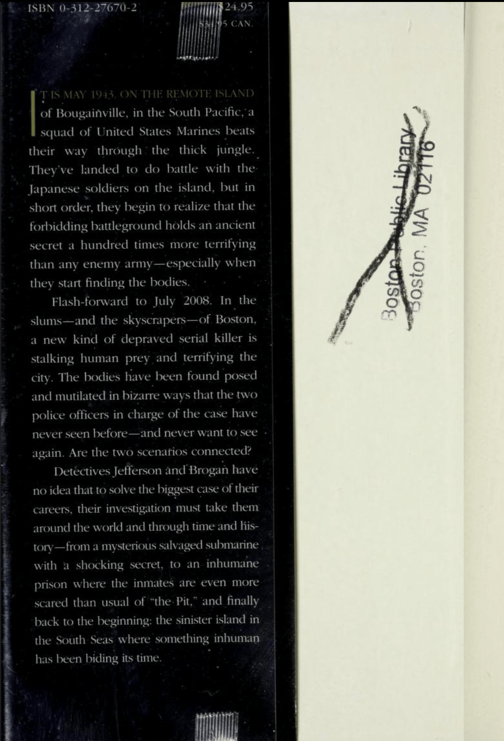 Detectives Jefferson and Brogan have no idea that to solve the biggest case of their careers, their investigation must take them around the world and through time and history---from a mysterious salvaged submarine with a shocking secret, to an inhumane prison where the inmates are even more scared than usual of “the Pit,”and finally back to the beginning: the sinister island in the South Seas where something inhuman has been biding its time