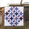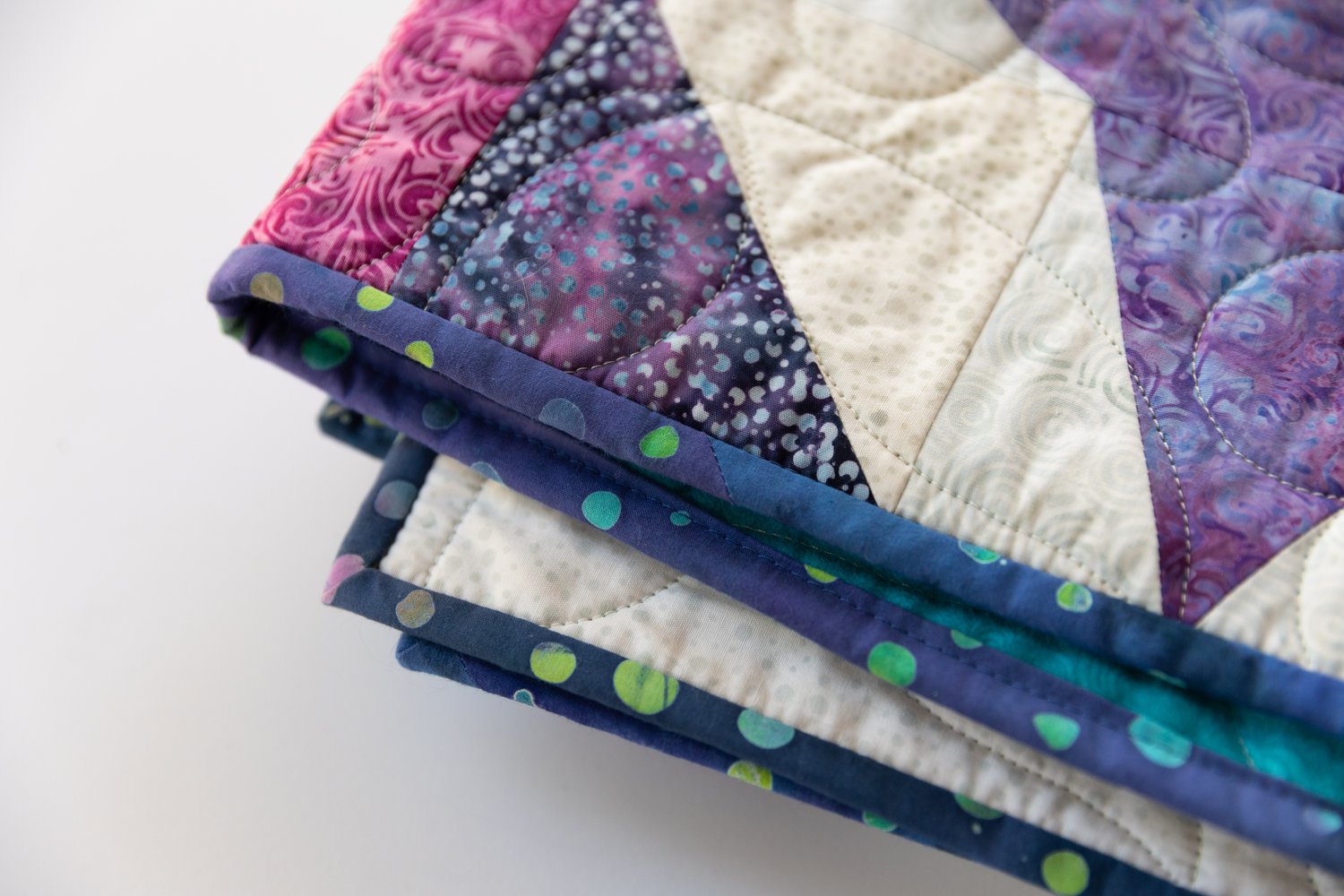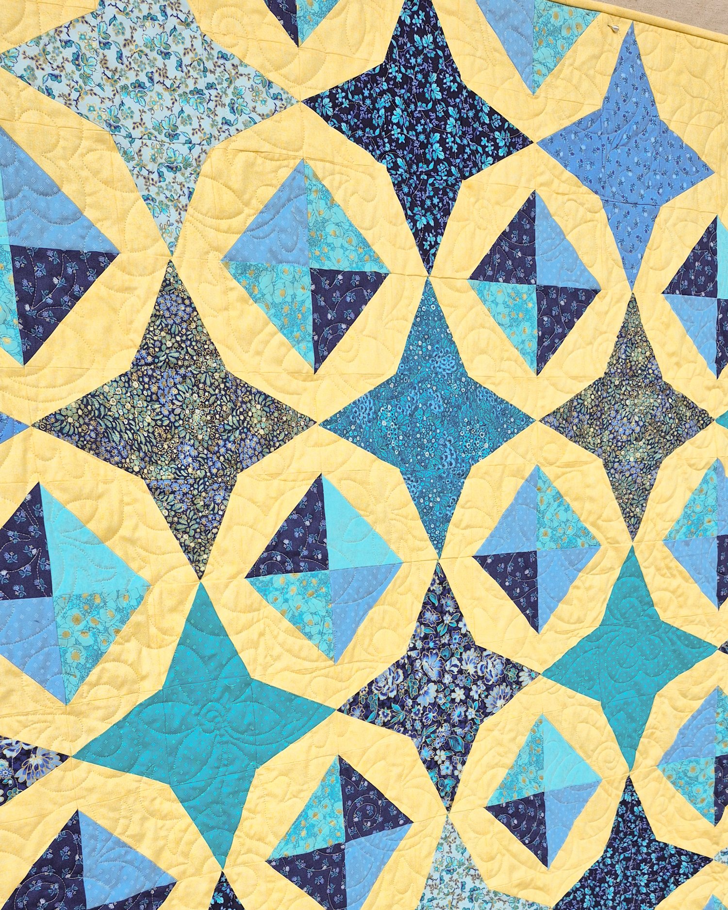 This pattern has been updated to include four sizes, so you can stitch the night sky for any occasion: baby, lap, throw, and queen. It’s both fat quarter and charm pack friendly, making it easy to shop your stash or showcase a favorite collection without complicated cutting math. Use a calm, dark background for a classic galaxy vibe, or flip the script with a light background and saturated stars for a sunrise-at-dawn feel.