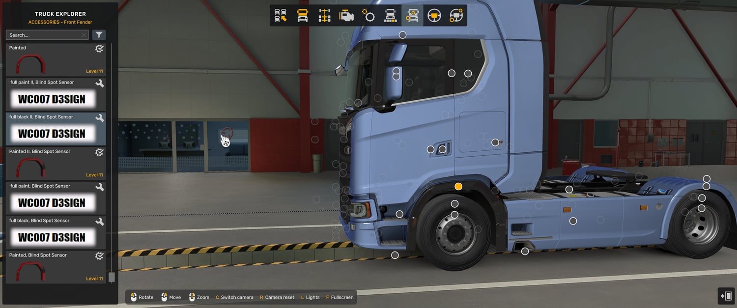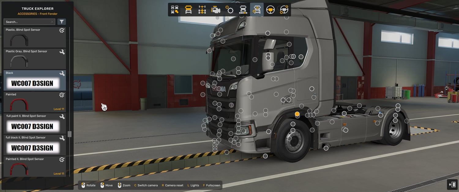 MOD description: Scania NG fenders with black colour of blind spot detector and full fender