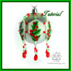 A Gorgeous ornament cover using odd-count peyote stitch panels with the holly motif, and fringes and embellishments that will shine and sparkle on your tree or window or wherever you choose to hang it.