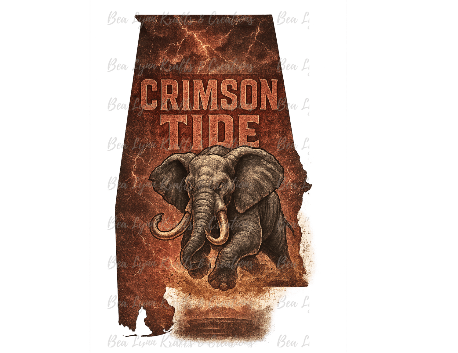 - Dominant elephant mascot and bold “CRIMSON TIDE” text