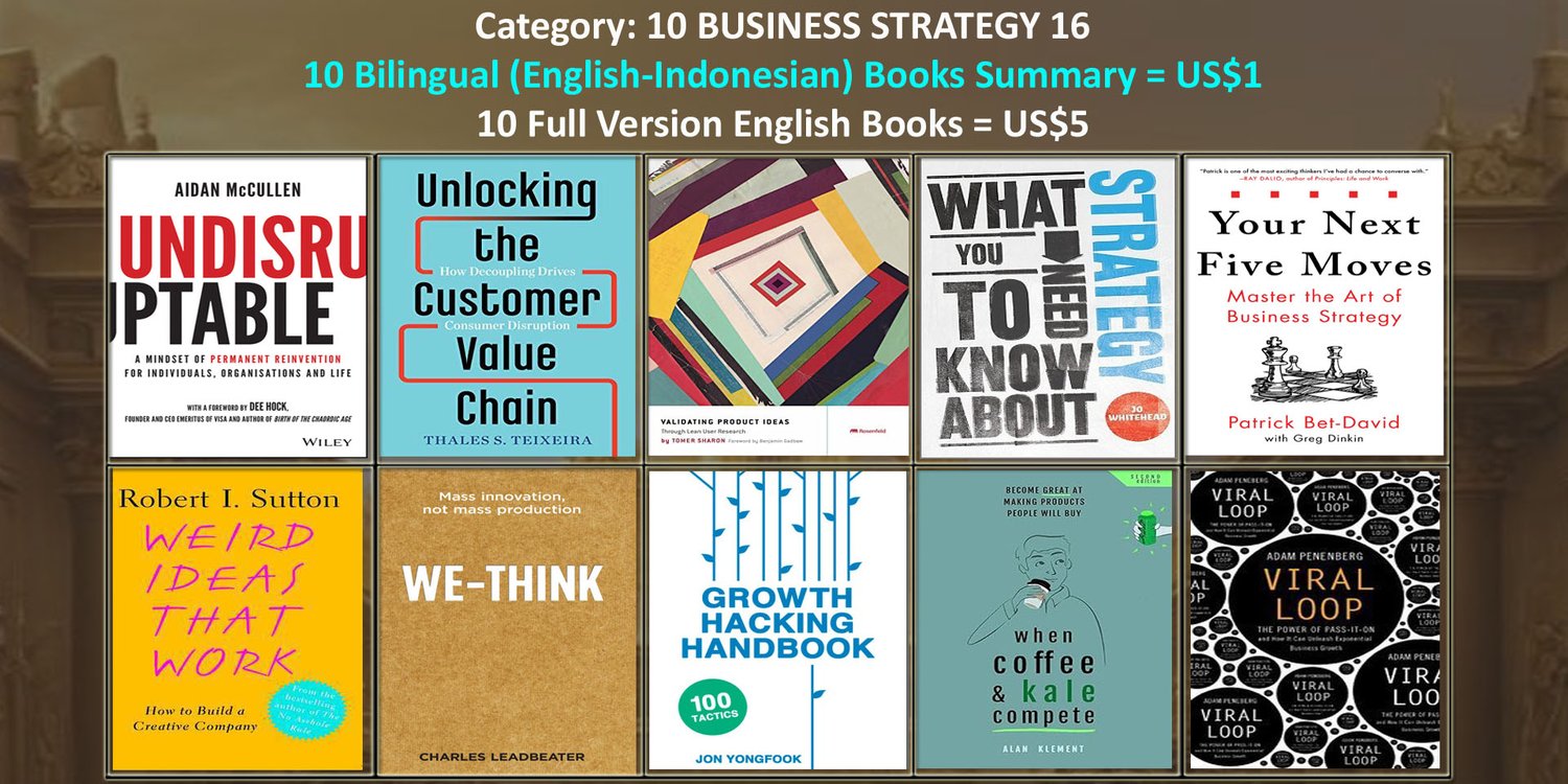 · Untuk 10 buku summary dalam 2 bahasa (English-Indonesian), hanya perlu 1 dollar saja, atau Rp.16.000,-