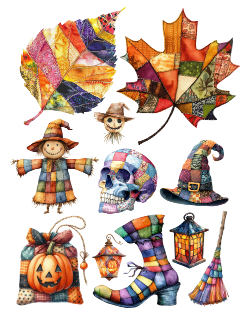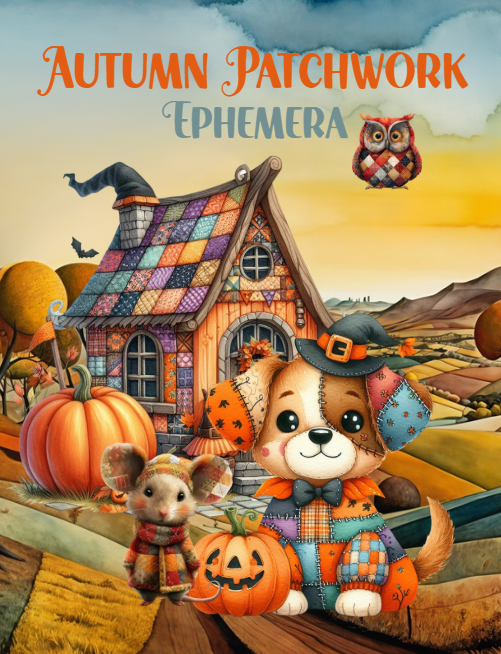 AUTUMN PATCHWORK EPHEMERA TO CUT AND COLLAGE BOOK
