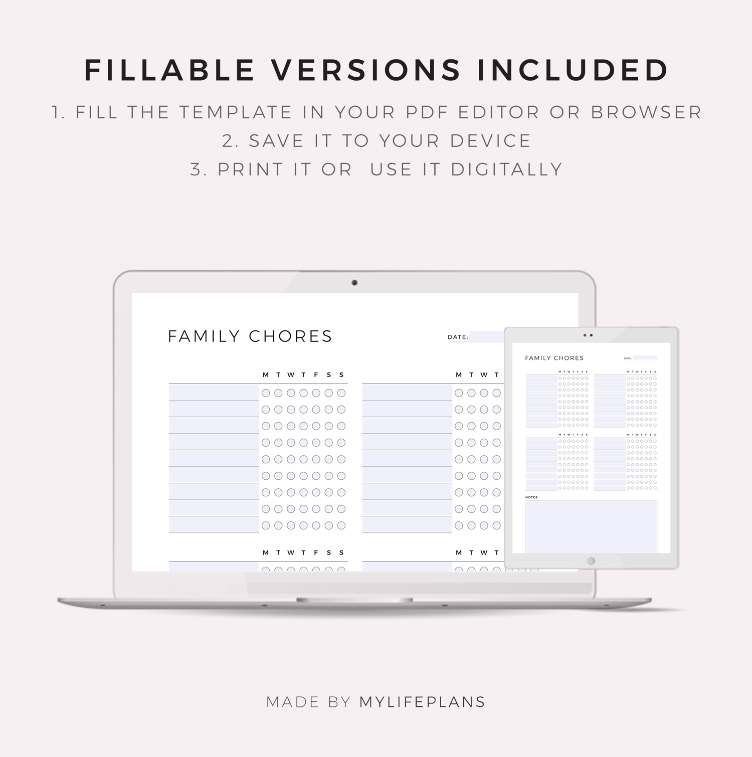 This is a printable weekly family chores — just download, print, and start using it right away.