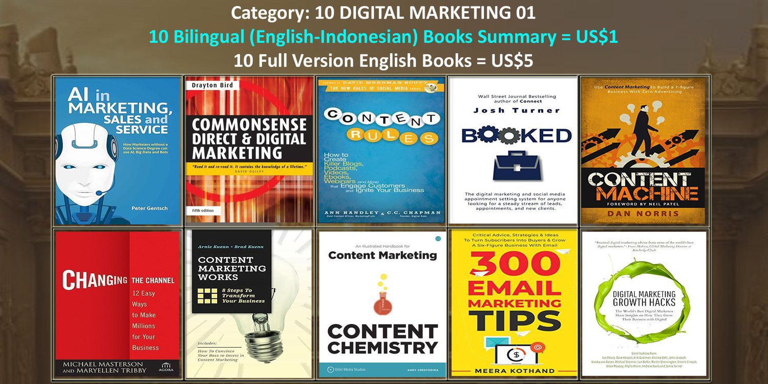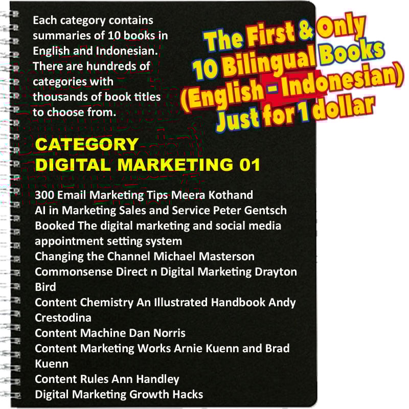 · Untuk 10 buku summary dalam 2 bahasa (English-Indonesian), hanya perlu 1 dollar saja, atau Rp.16.000,-
