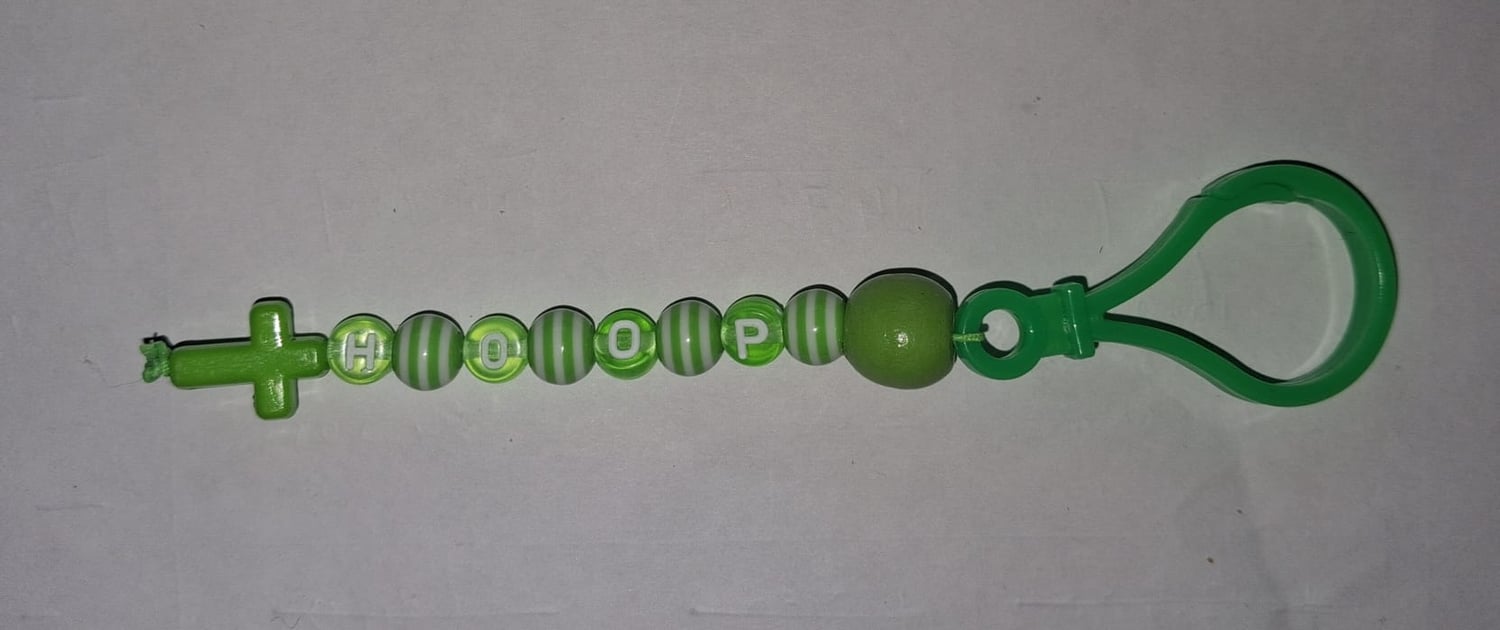 Groene sleutelhanger met tekst "Hoop"