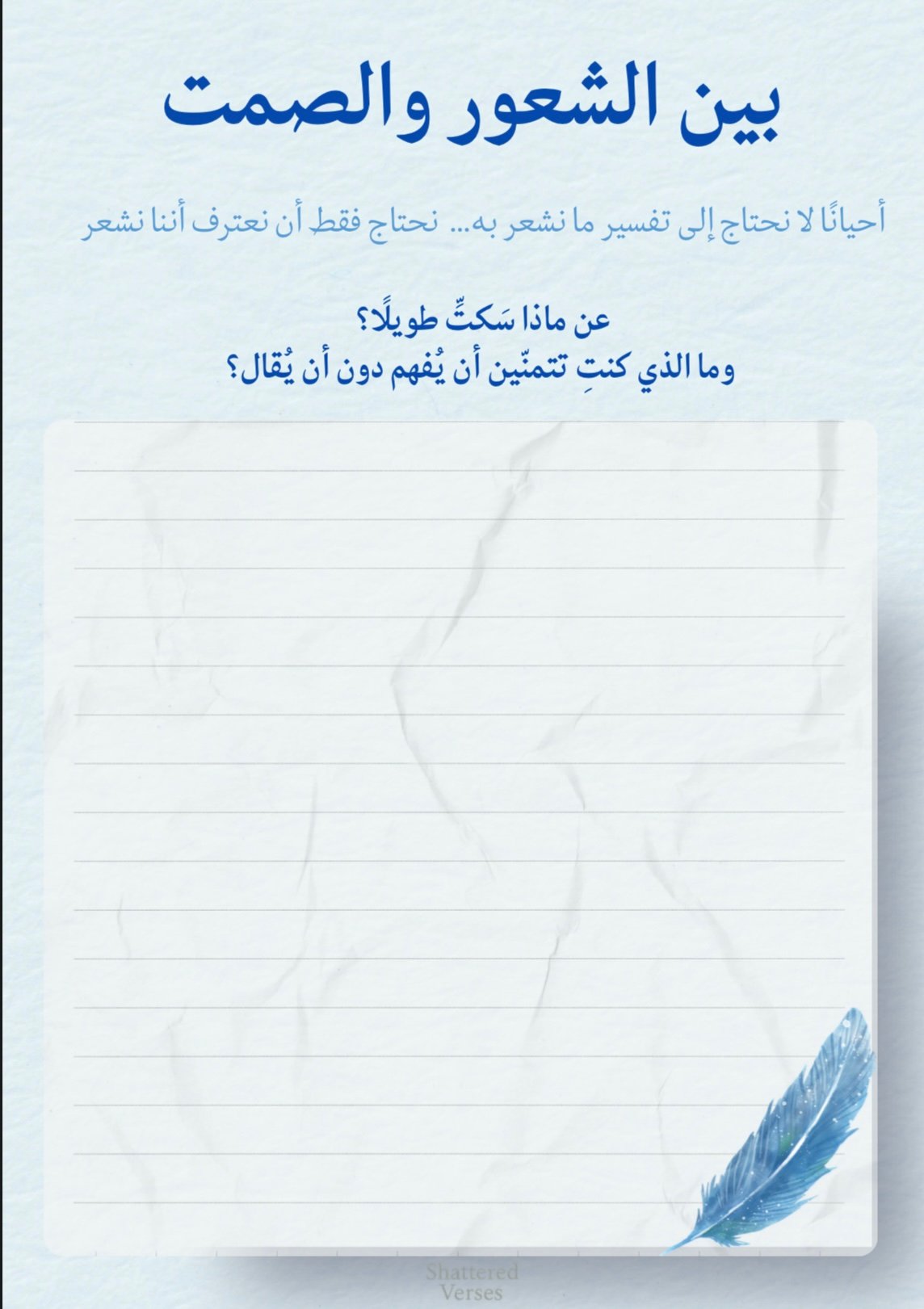 .يحتوي على صفحات تفاعلية تساعدك على فهم مشاعرك، إعادة ترتيب أفكارك وكتابة ما لا يقال