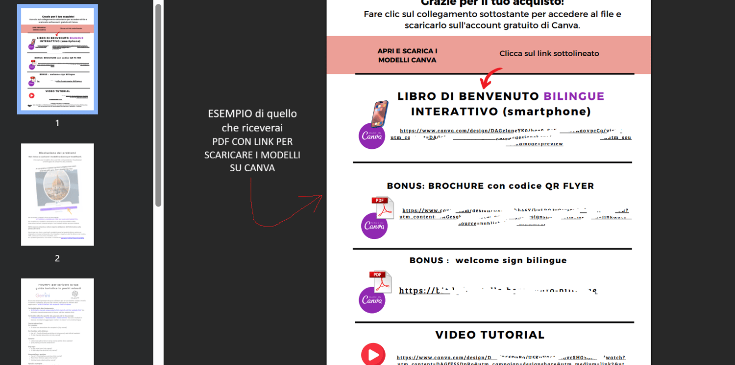 - Apri il PDF e clicca i link inclusi: verrai reindirizzato a Canva.