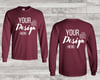 Front and Back Gildan 2400 Mockup, Maroon Gildan 2400 MockUp, Men's Long Sleeve Shirt Mockup, Instant Download Unisex Design Template