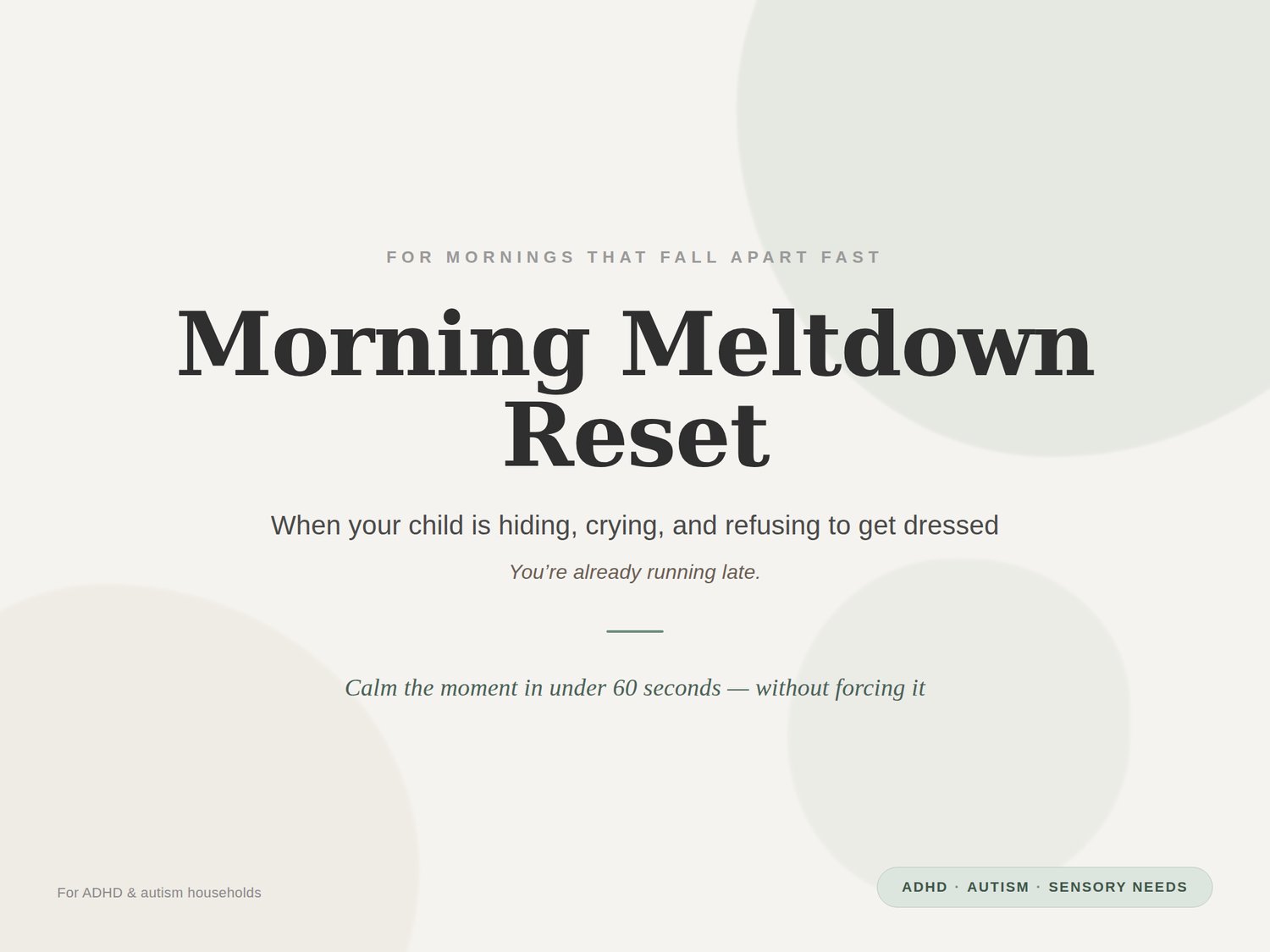 Designed for parents of neurodivergent children (ADHD, autism, sensory needs), this tool helps you stay grounded, respond clearly, and keep connection—even on the hardest mornings.