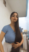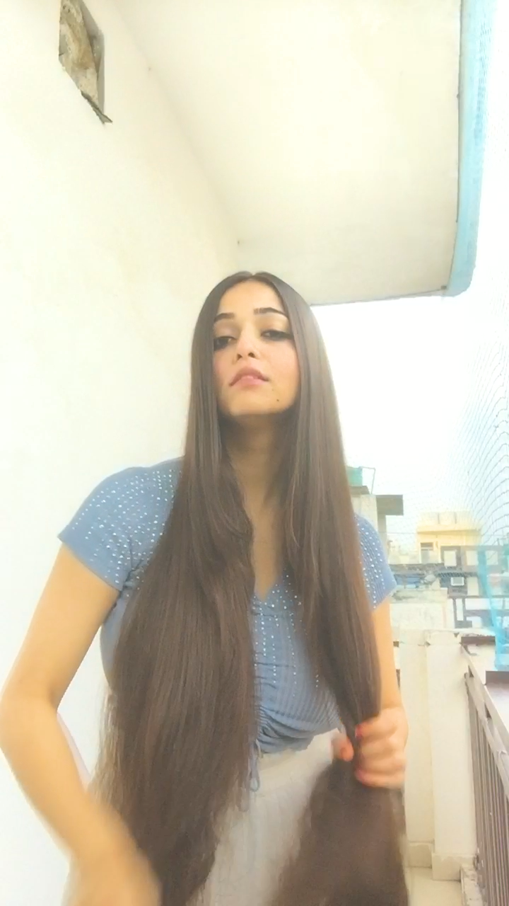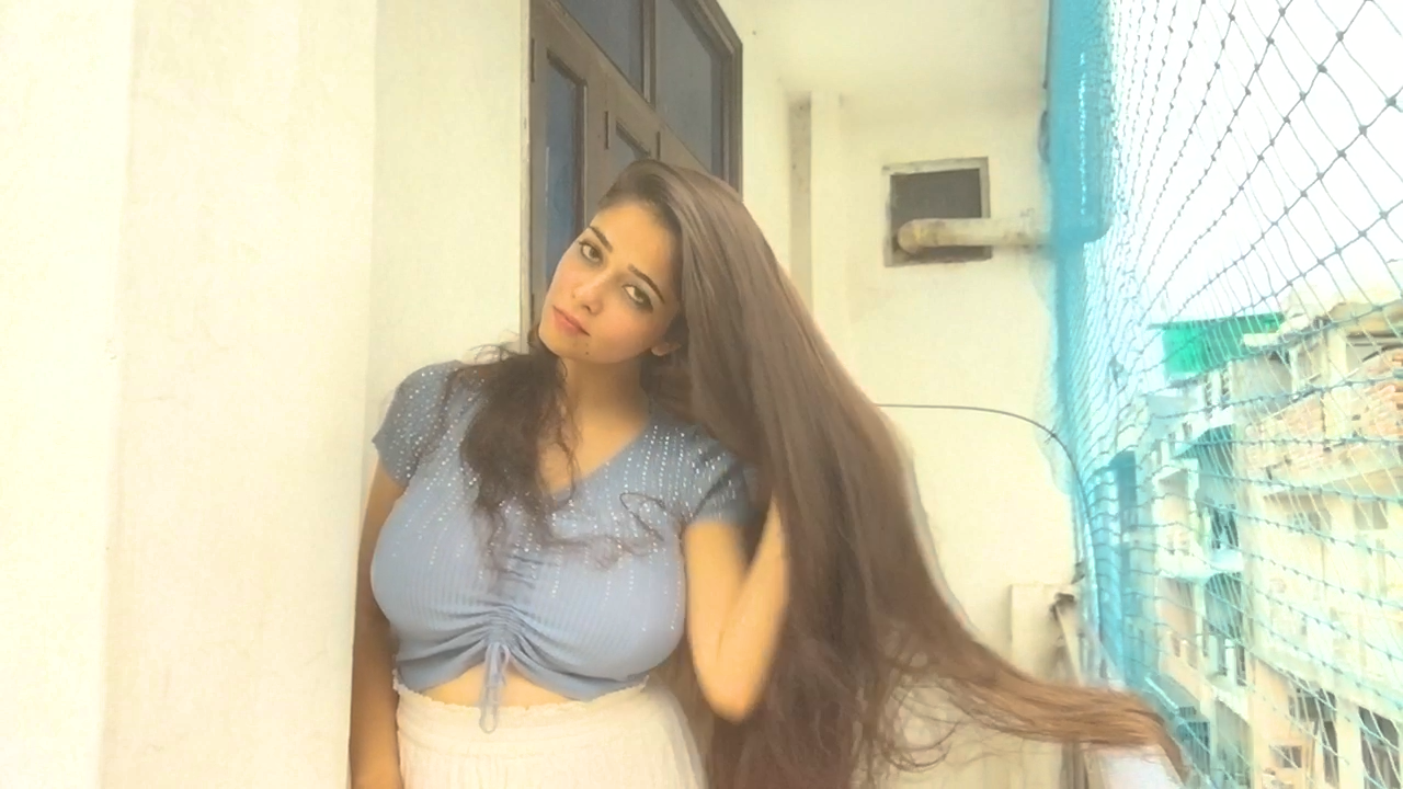 Celebrate the beauty of Model Surbhi’s thick, long hair in this elegant 12-minute video. Dressed in a stylish top and white skirt, she showcases graceful bun drops, gentle hair brushing, playful hair flips, and soft styling moments.