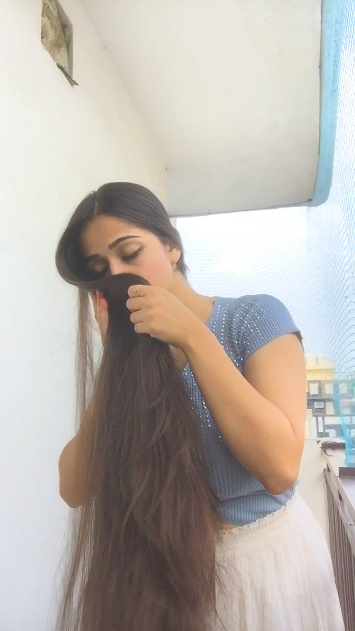 Captured in a relaxed setting, this video is a treat for long hair enthusiasts who love watching healthy, voluminous hair in natural motion.