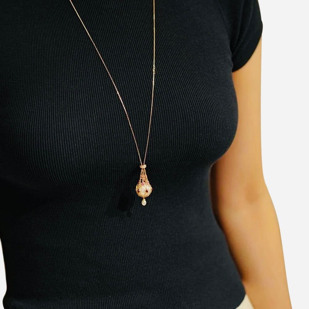 With a graceful lavalier design, it's a perfect blend of classic charm and contemporary style, adding timeless elegance to any look.