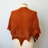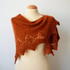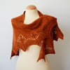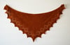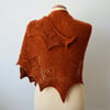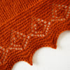 This shawl is worked from the top-down in one piece. Both written and charted instructions for the patterned edging are included. The pattern is available in 3 sizes; the shawl pictured is in the smallest size.