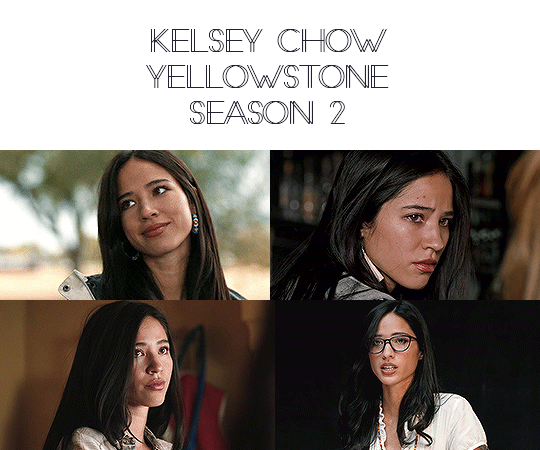In this here gif pack you’ll find 351 gifs of Kelsey Chow in season 2 of ‘Yellowstone' All these gifs were made by me, so please don’t claim as your own. Do NOT put into other gif hunts. If credit is given, you may use/edit them as sidebars, crackships, etc, just please ( @ ) me so I can see your wonderful creations!