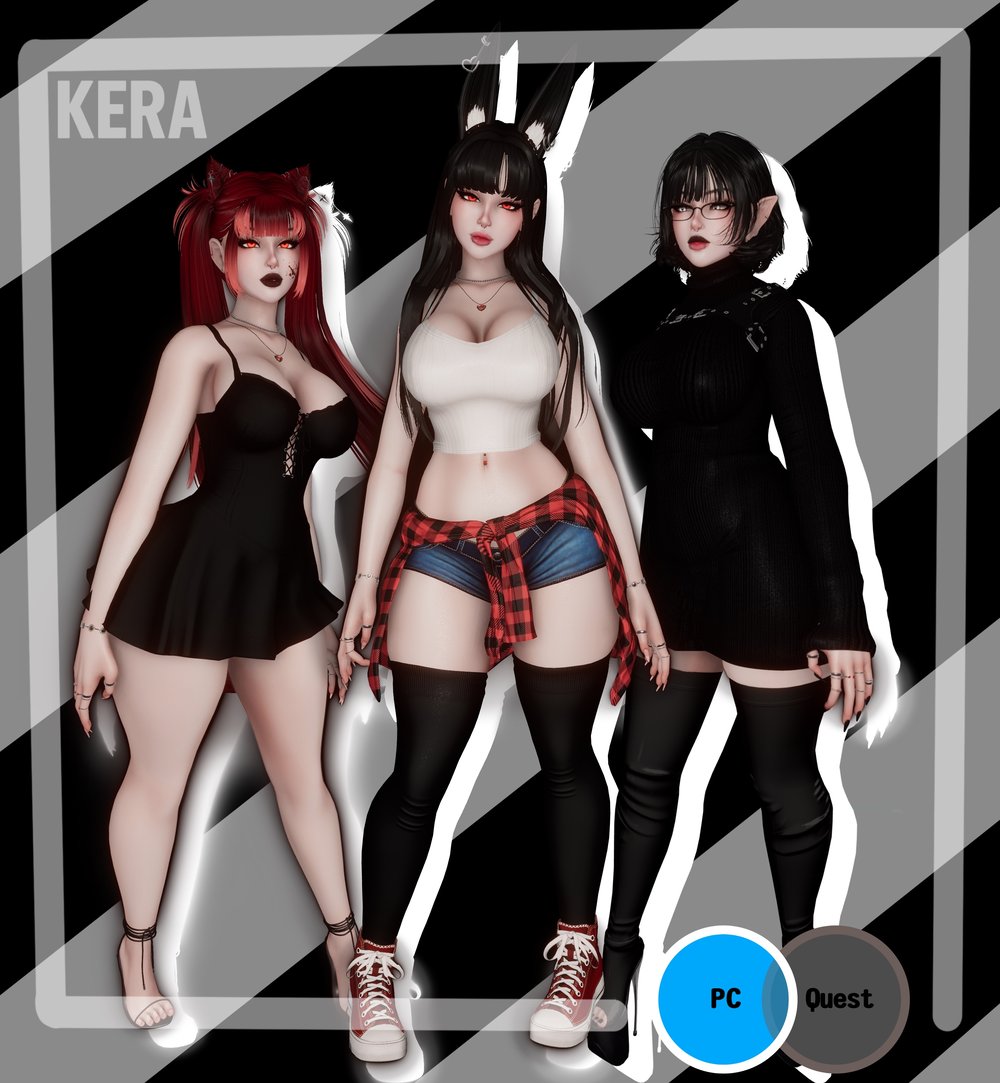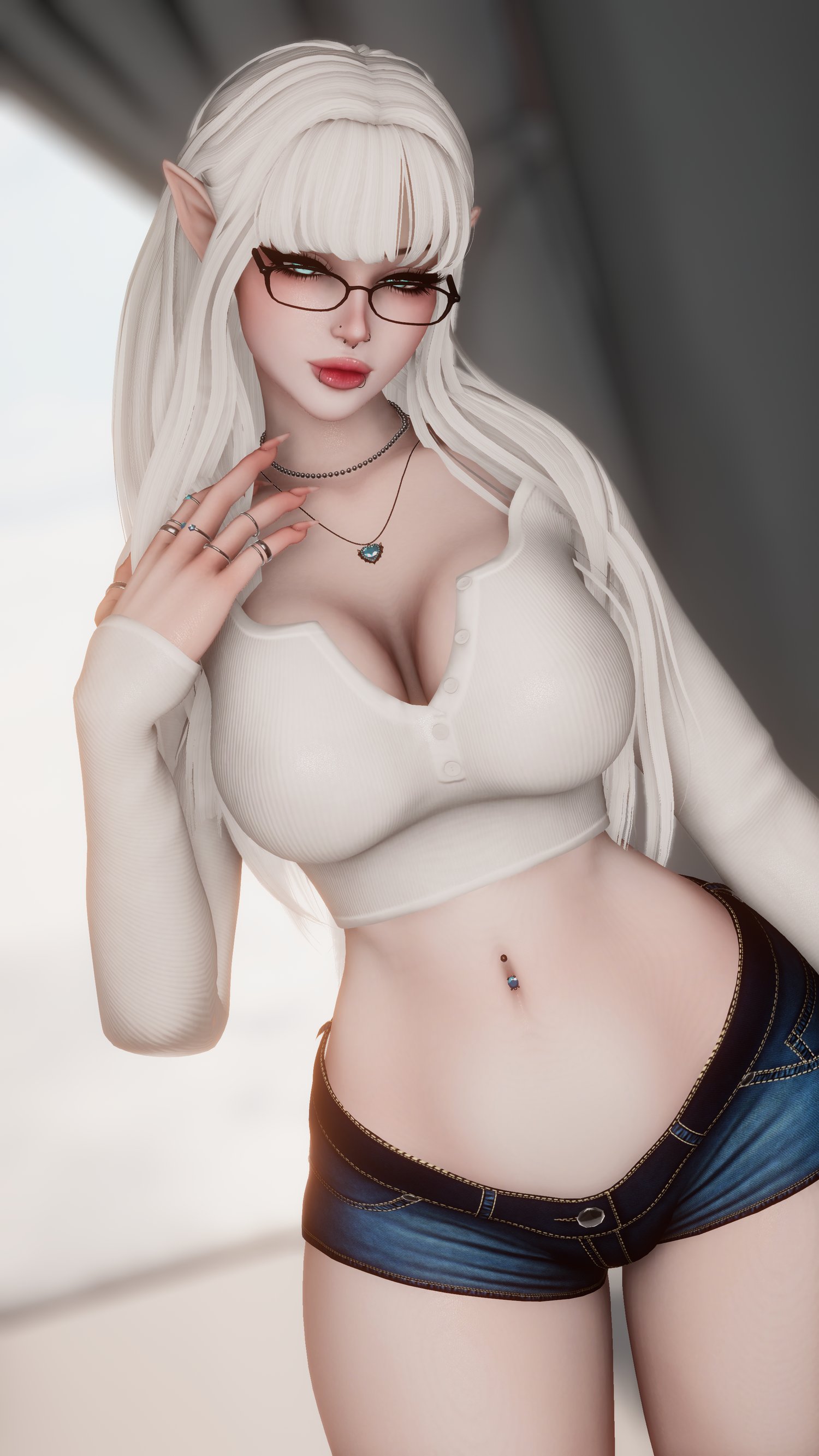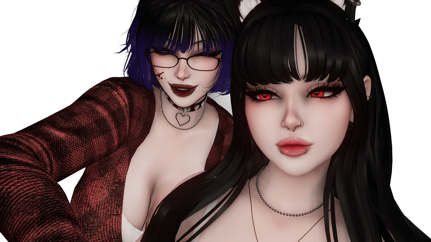 Head, Underwear, Cat Ears, Turtleneck Dress and Body (Heavily Edited) - Bracelets - Bunny Set - Choker - Cat Tail - Demon Horns - Face/Ear Piercings - Button Top/Pearl Necklace/Heart Necklace/Belly Piercing/Leggings/Booty Shorts - Rings - Bangs Hair/Messy Hair/Turtleneck/Denim Shorts - Pigtails - Short Hair - Converse - Babydoll Dress - Comfy Tank - Skirt - Headpat Particles - Eye Textures - Waist Flannel - Ass Slap SFX