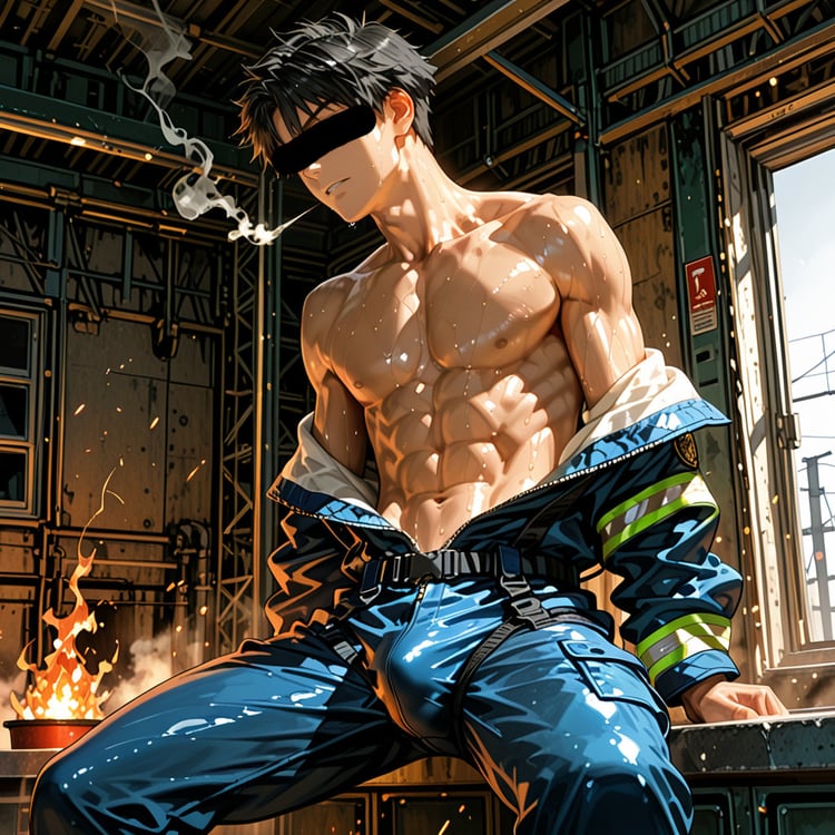 The theme is ""work scenes"" of firefighters, and the charm of the masculine characters of the firefighters is boldly expressed.