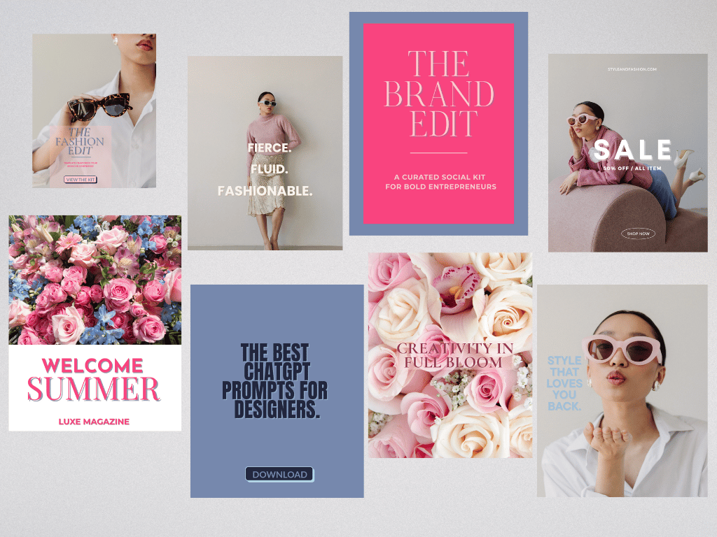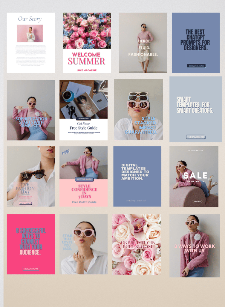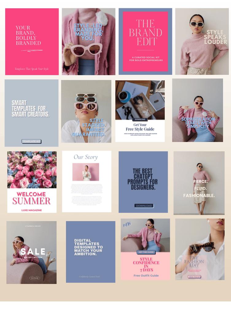 This 20-template set brings fresh energy and polished femininity to your social presence. A balanced blend of soft pinks and breezy blues, Chic on Ice helps you say more by showing less.