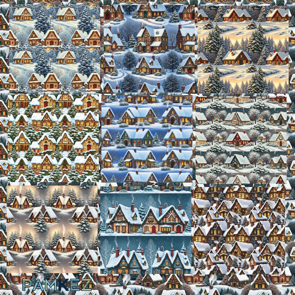 ✔ Seamless winter cottage patterns in rich, vibrant detail