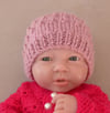Baby’s 8ply eyelet and stocking stitch Beanie with rib band - Poppy