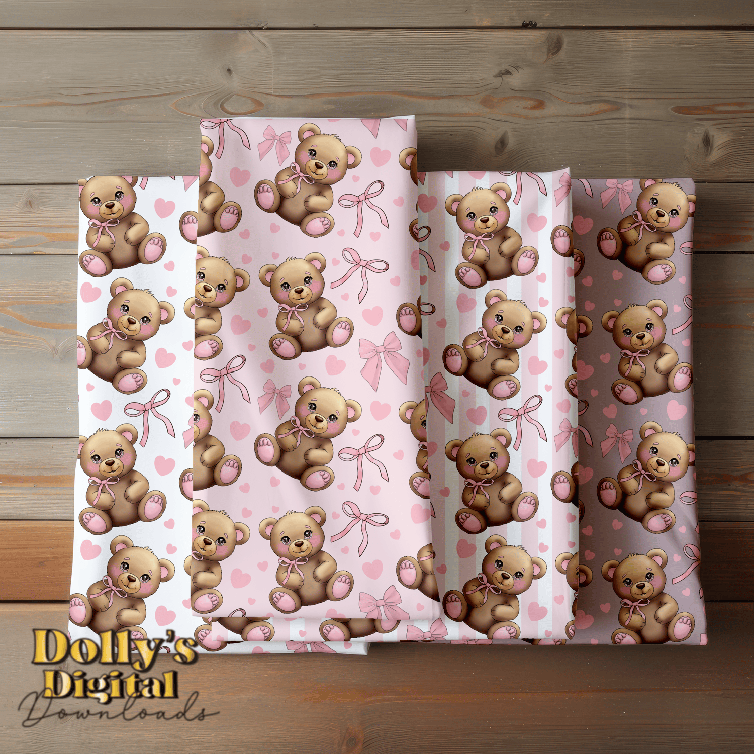 Instant digital download of our Pink Teddies and Bows Seamless Patterns (4 PNG’s)