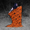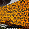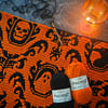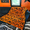 Gothica is a Halloween themed blanket inspired by old Victorian damask-style wallpaper. The pattern includes 6 different Halloween characters (Black Cat, Skull, Raven, Witch, Jack-o-lantern, Ghost) and can be mixed and matched to create any configuration you like. The blanket can be made any size from king sized to baby blanket, or even a pillow or small wall-hanging.