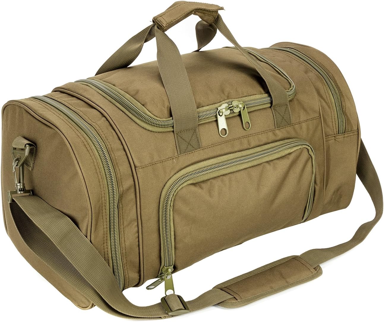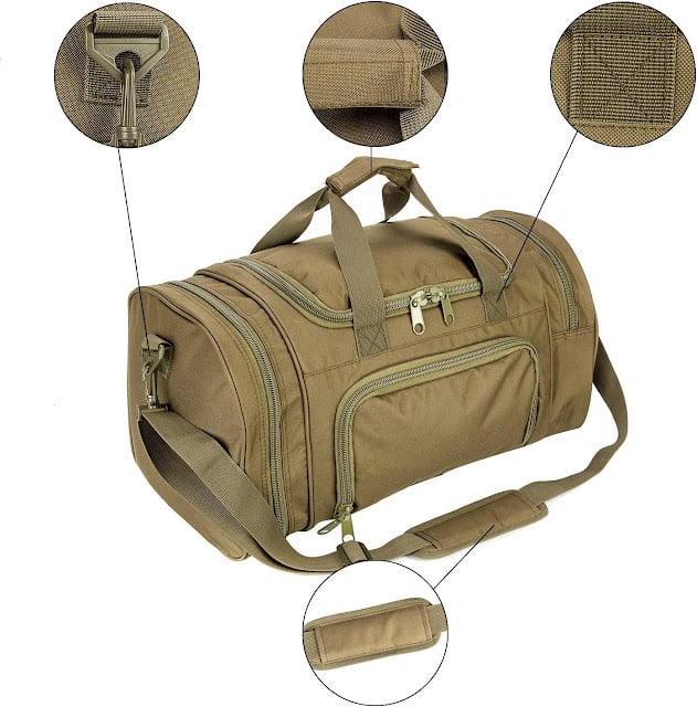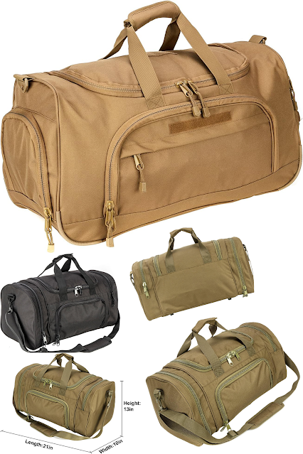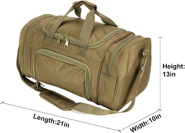 - 👟The military duffel bag with 21”*10”*13” and 45L. The bag is made of 600 denier polyester lined with PVC and waterproof,wearable and durable.Model B has MOLLE SYSTEM on the side. There are two larger bags on both sides of Model A.