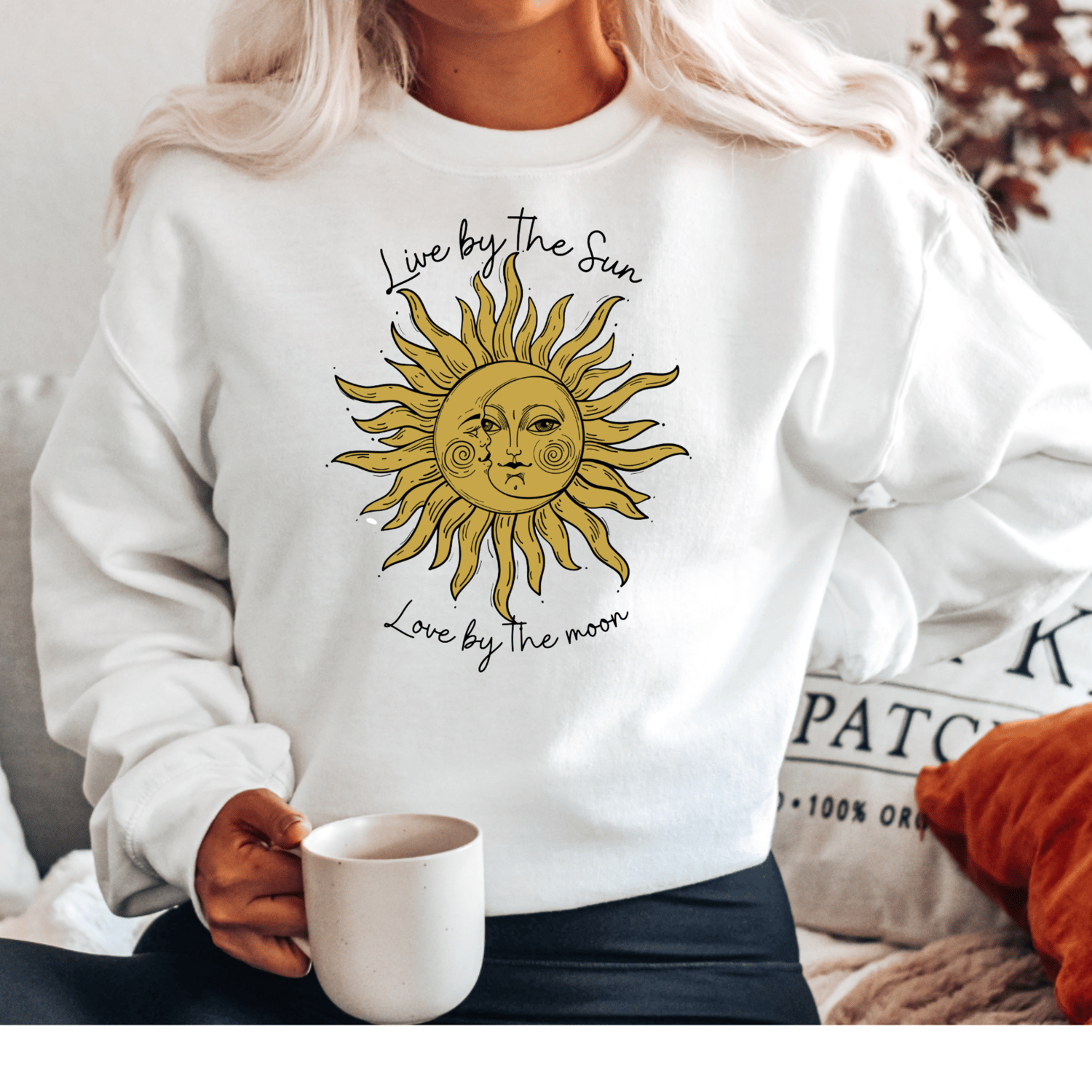 "Live by the Sun, Love by the Moon - Boho Transparent PNG Design for T-Shirts, Mugs, Totes & More