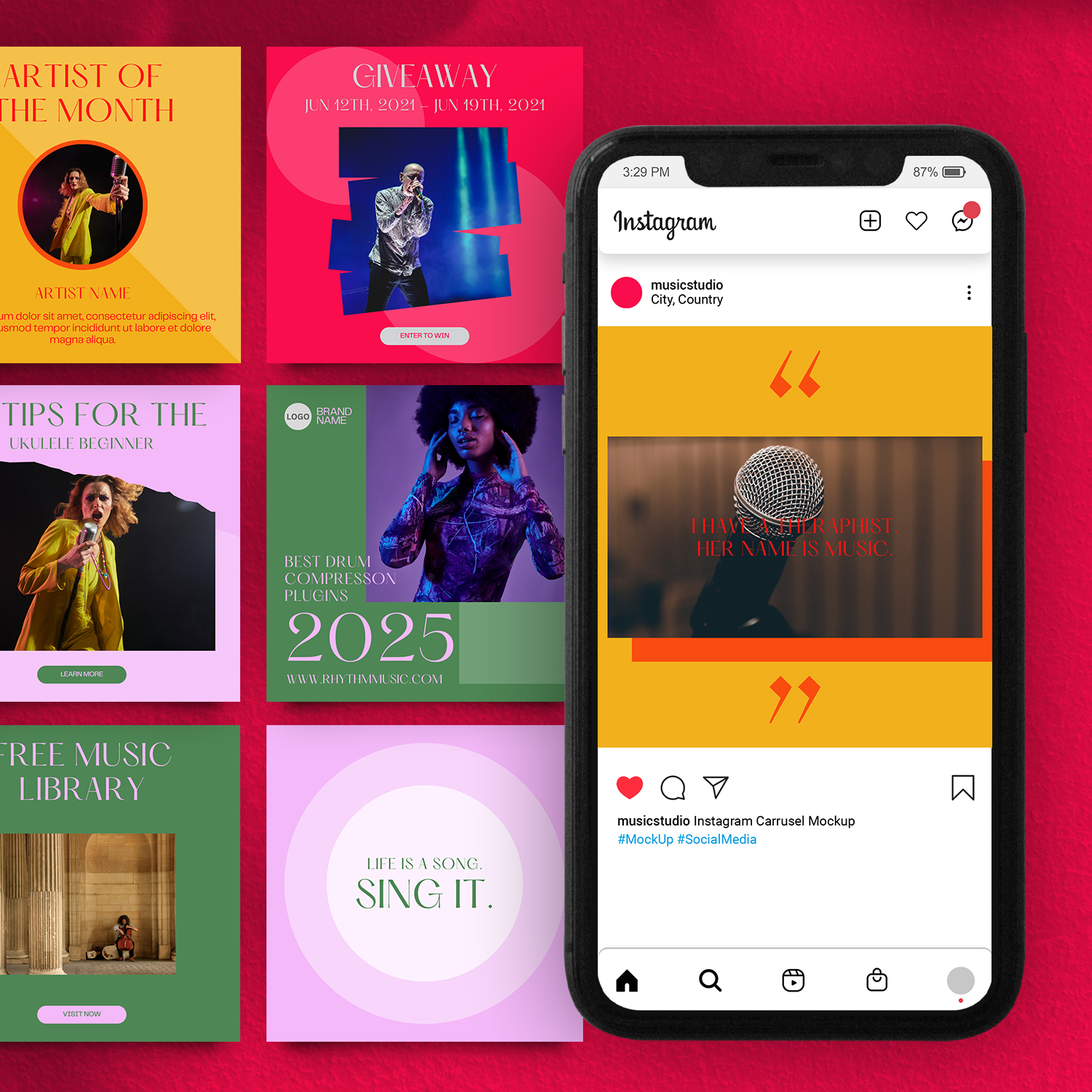 - 2 Carousel Templates: Perfect for showcasing in-depth content such as music production tutorials, artist journeys, or gear comparisons in a swipeable format.