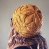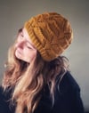 This pretty hat, knitted in Aran weight yarn, is created by increasing over and over and then decreasing altogether in one row.