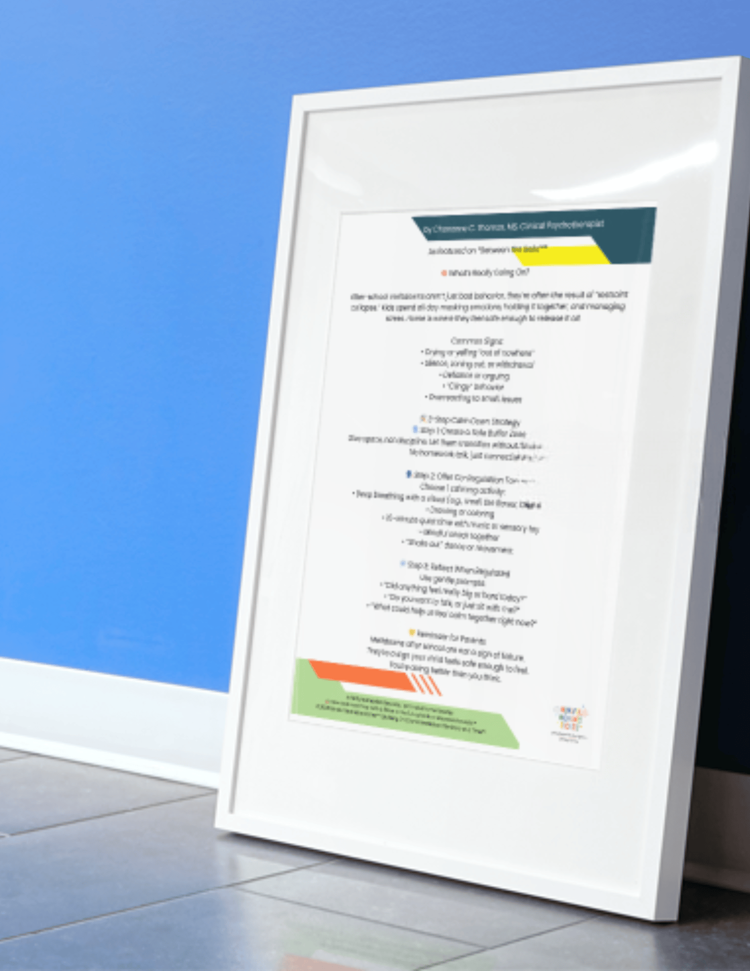 After a long school day, many children experience “after-school restraint collapse,” the emotional crash that happens when they finally feel safe enough to let their guard down. This printable After-School Calm Down Kit gives parents and caregivers a simple, ready-to-use tool to bring calm, connection, and confidence back into the afternoon.